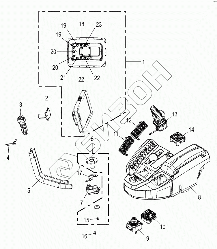 Графический каталог запасных частей к технике: KRONE BIG-X-580. Cab - terminal / armrest