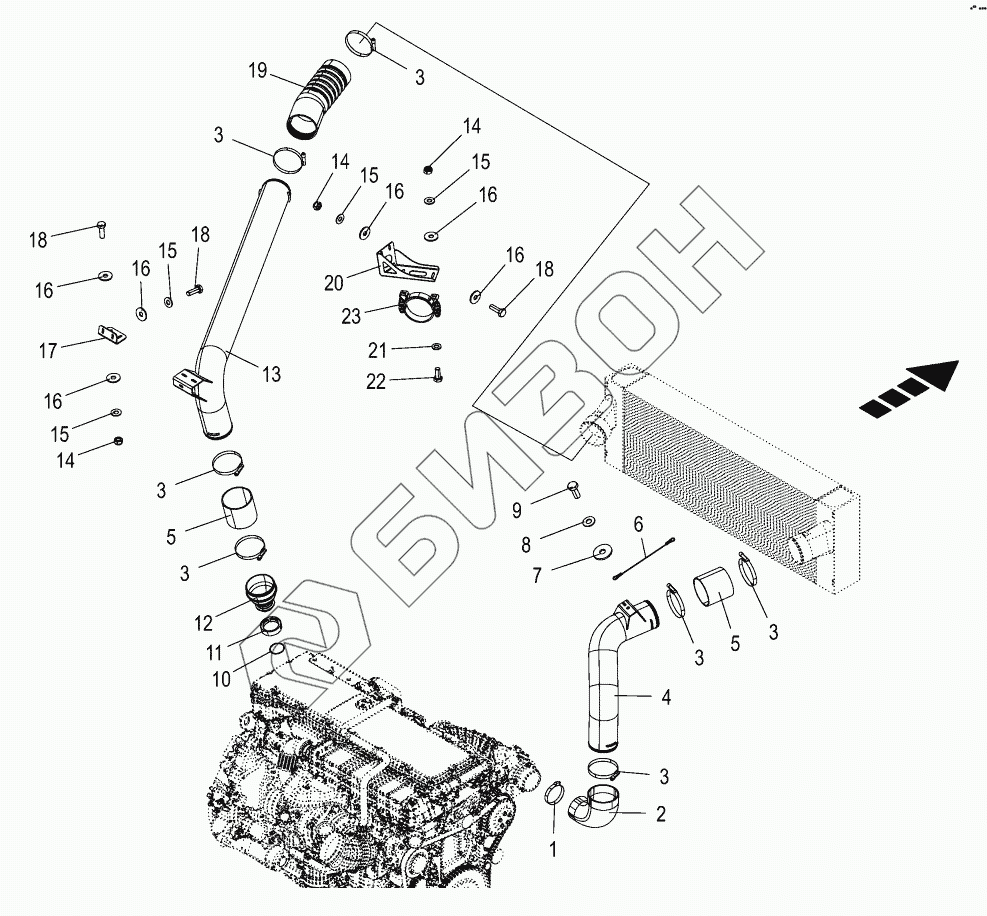 Графический каталог запасных частей к технике: KRONE BIG-X-580. Charge air cooler