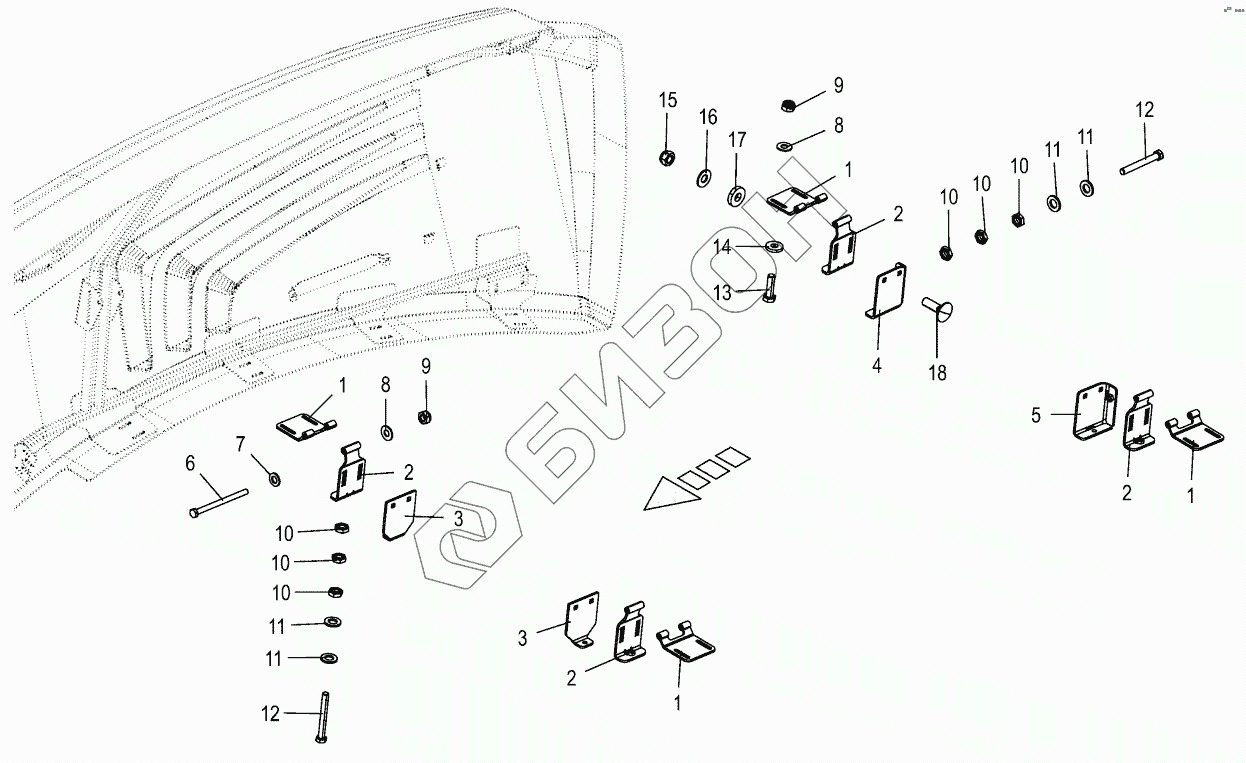 Графический каталог запасных частей к технике: KRONE BIG-X-580. Kinematics lateral flaps