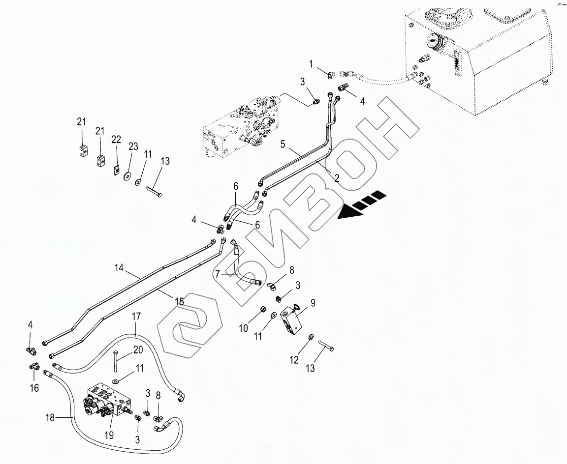 Графический каталог запасных частей к технике: KRONE BIG-X-580. Hydraulics - front block