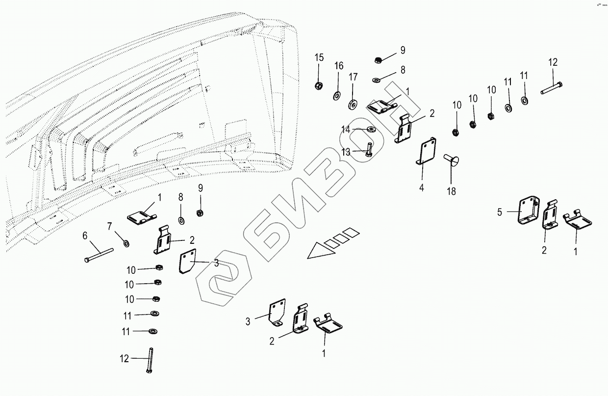 Графический каталог запасных частей к технике: KRONE BIG-X-580. Kinematics lateral flaps