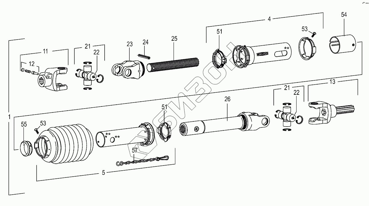 Графический каталог запасных частей к технике: KRONE BIG-X-580. P.T.O shafts