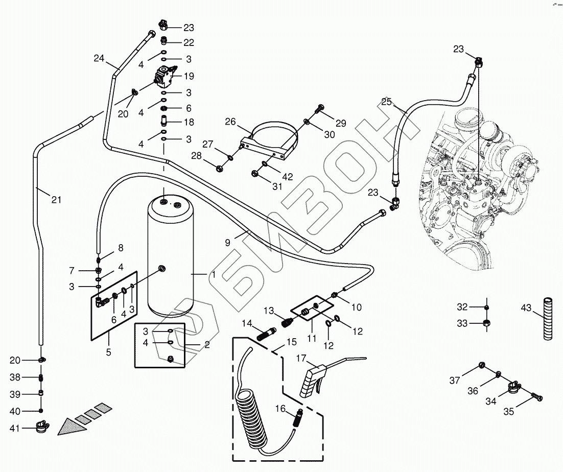Графический каталог запасных частей к технике: KRONE BIG-X-600. Air pressure - Blow-out gun