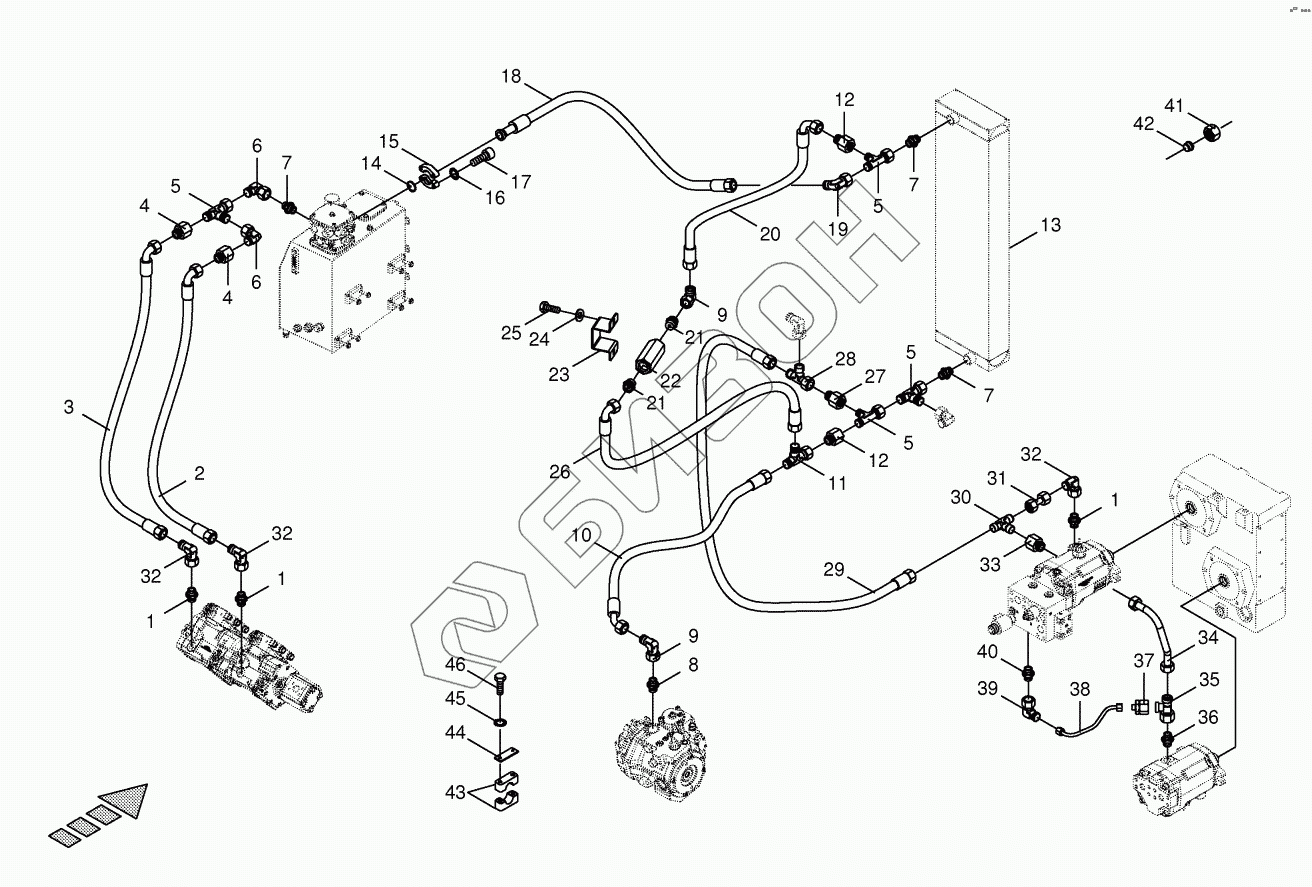 Графический каталог запасных частей к технике: KRONE BIG-X-600. Housing line / oil cooler