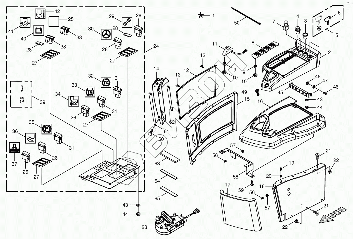 Графический каталог запасных частей к технике: KRONE BIG-X-600. Control box mounting parts
