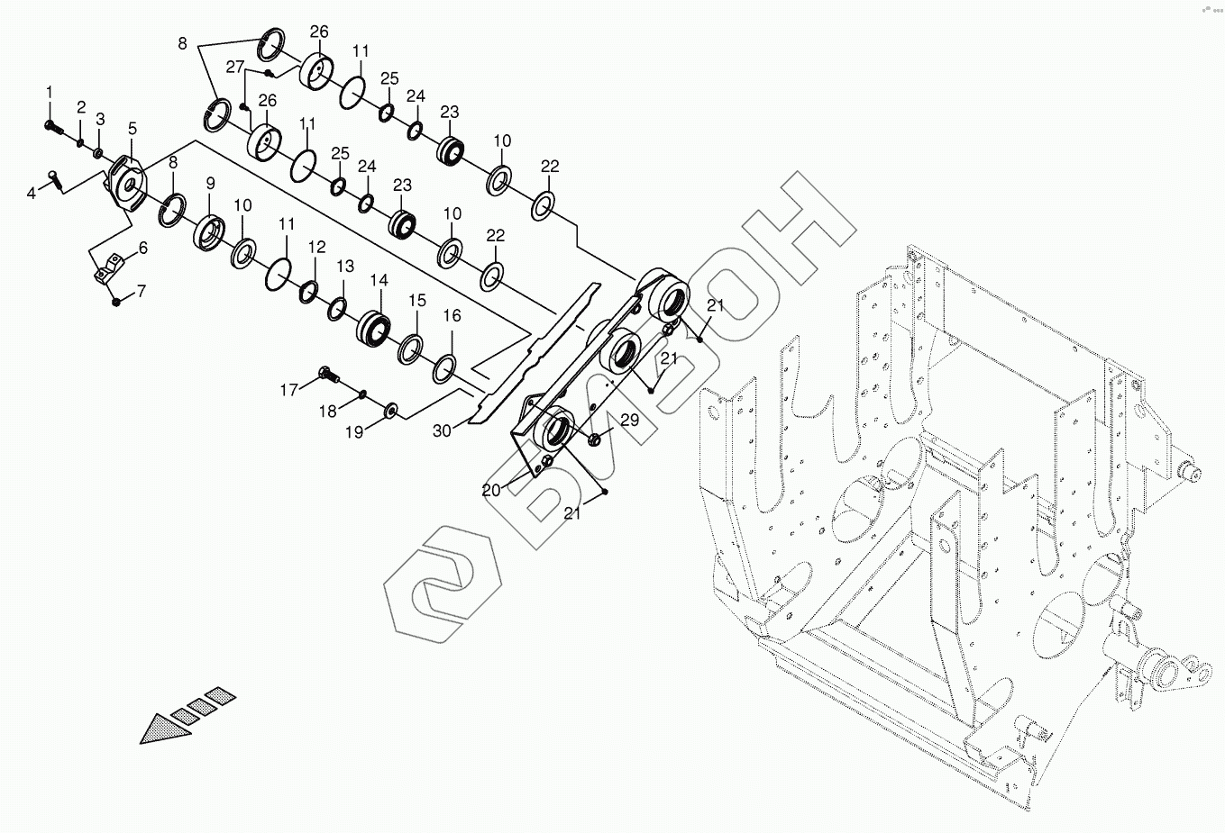 Графический каталог запасных частей к технике: KRONE BIG-X-600. Lower feed roller bearing