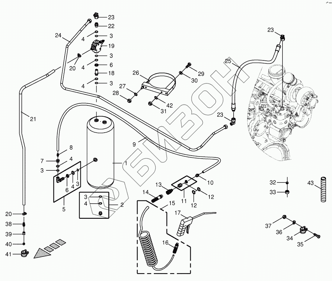 Графический каталог запасных частей к технике: KRONE BIG-X-600. Air pressure-Blow-out gun