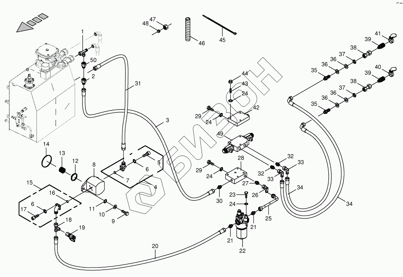 Графический каталог запасных частей к технике: KRONE BIG-X-600. Hydraulics-additive connection back