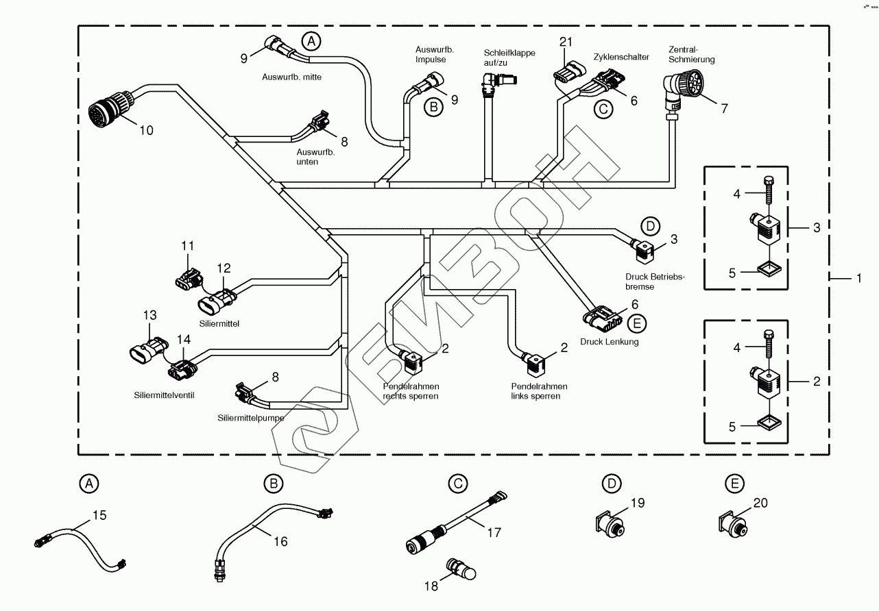 Графический каталог запасных частей к технике: KRONE BIG-X-600. Wiring harness-below the cabin