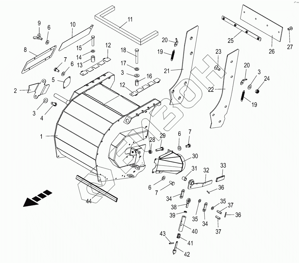 Графический каталог запасных частей к технике: KRONE BIG-X-630. Discharge accelerator housinge