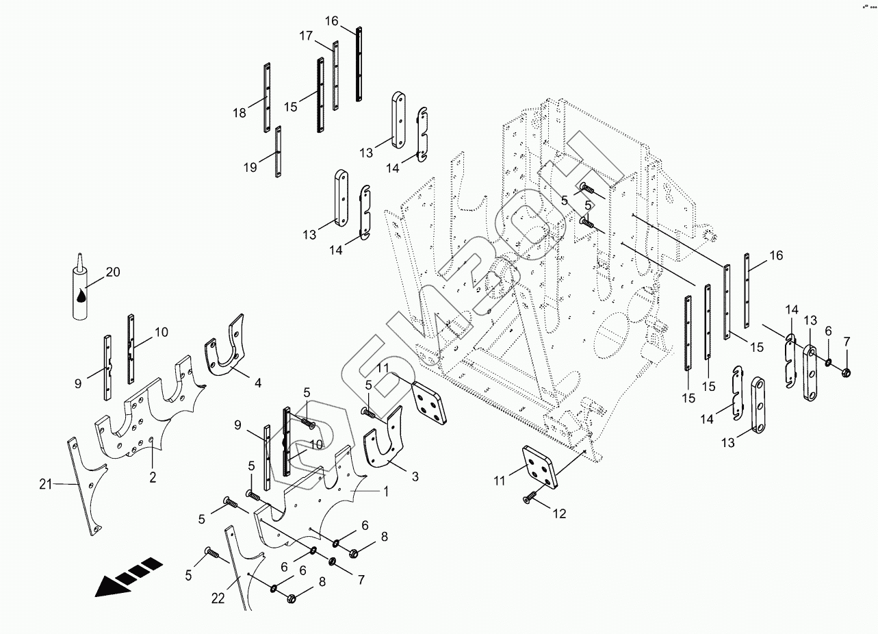 Графический каталог запасных частей к технике: KRONE BIG-X-630. Wearing plates / guide - feeder Housing