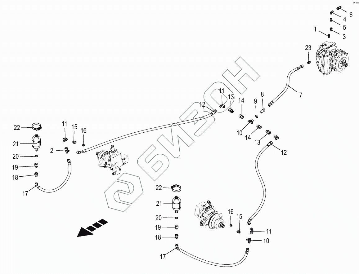 Графический каталог запасных частей к технике: KRONE BIG-X-630. Charge pressure circuit