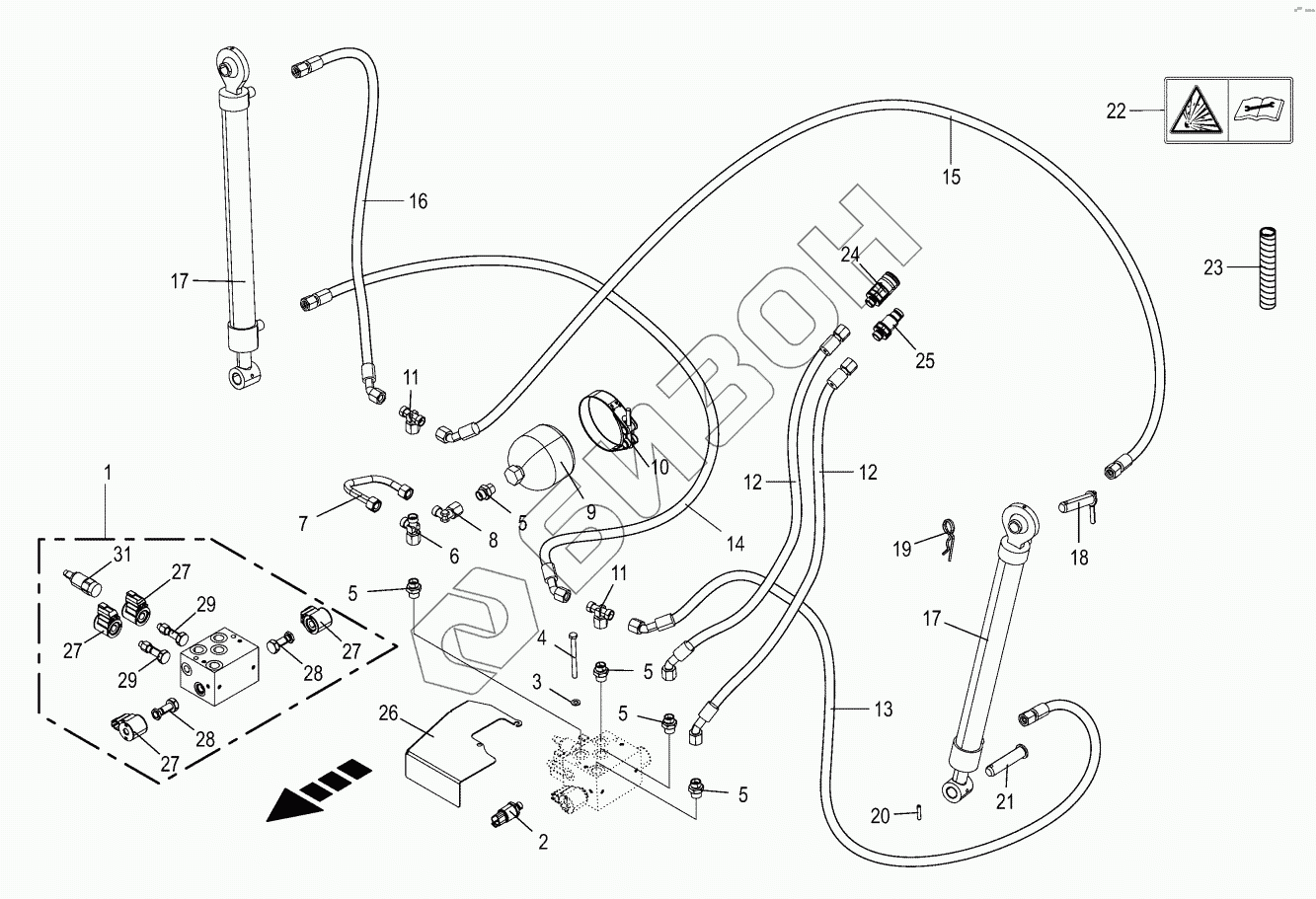 Графический каталог запасных частей к технике: KRONE BIG-X-630. Hydraulics - additional axis