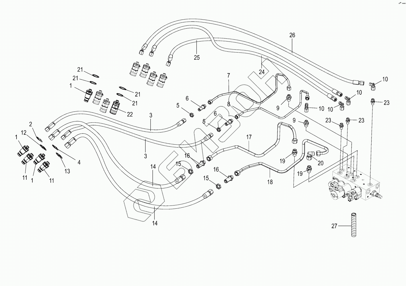 Графический каталог запасных частей к технике: KRONE BIG-X-630. Hydraulics - front attachment
