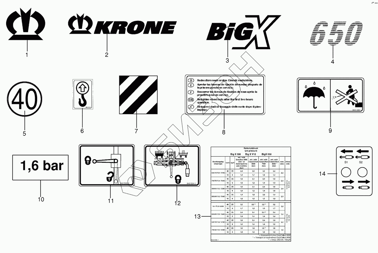 Графический каталог запасных частей к технике: KRONE BIG-X-650. General information labels