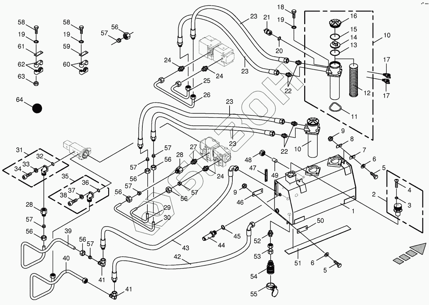 Графический каталог запасных частей к технике: KRONE BIG-X-650. Hydraulic tank/suction lines