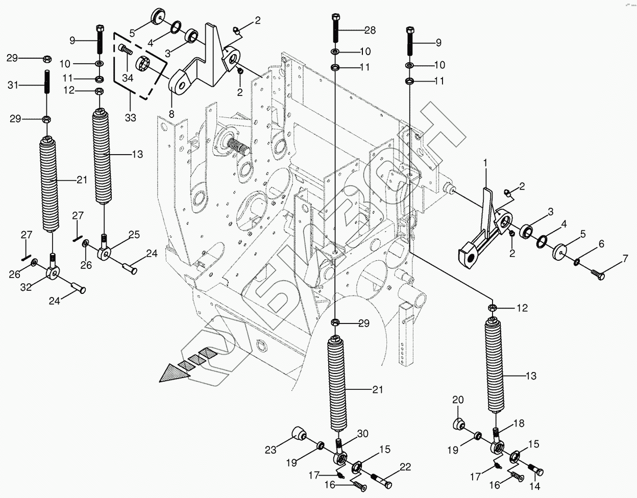 Графический каталог запасных частей к технике: KRONE BIG-X-650. Oscillating levers/Tension spring