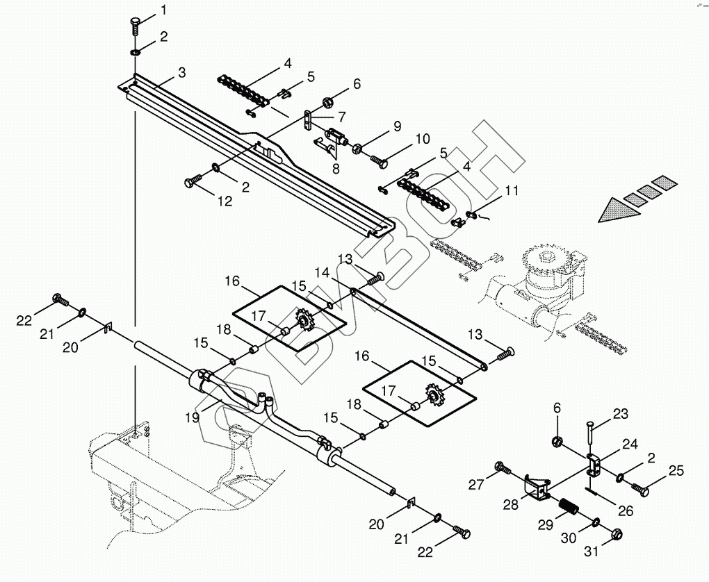 Графический каталог запасных частей к технике: KRONE BIG-X-650. Sharpening device drive