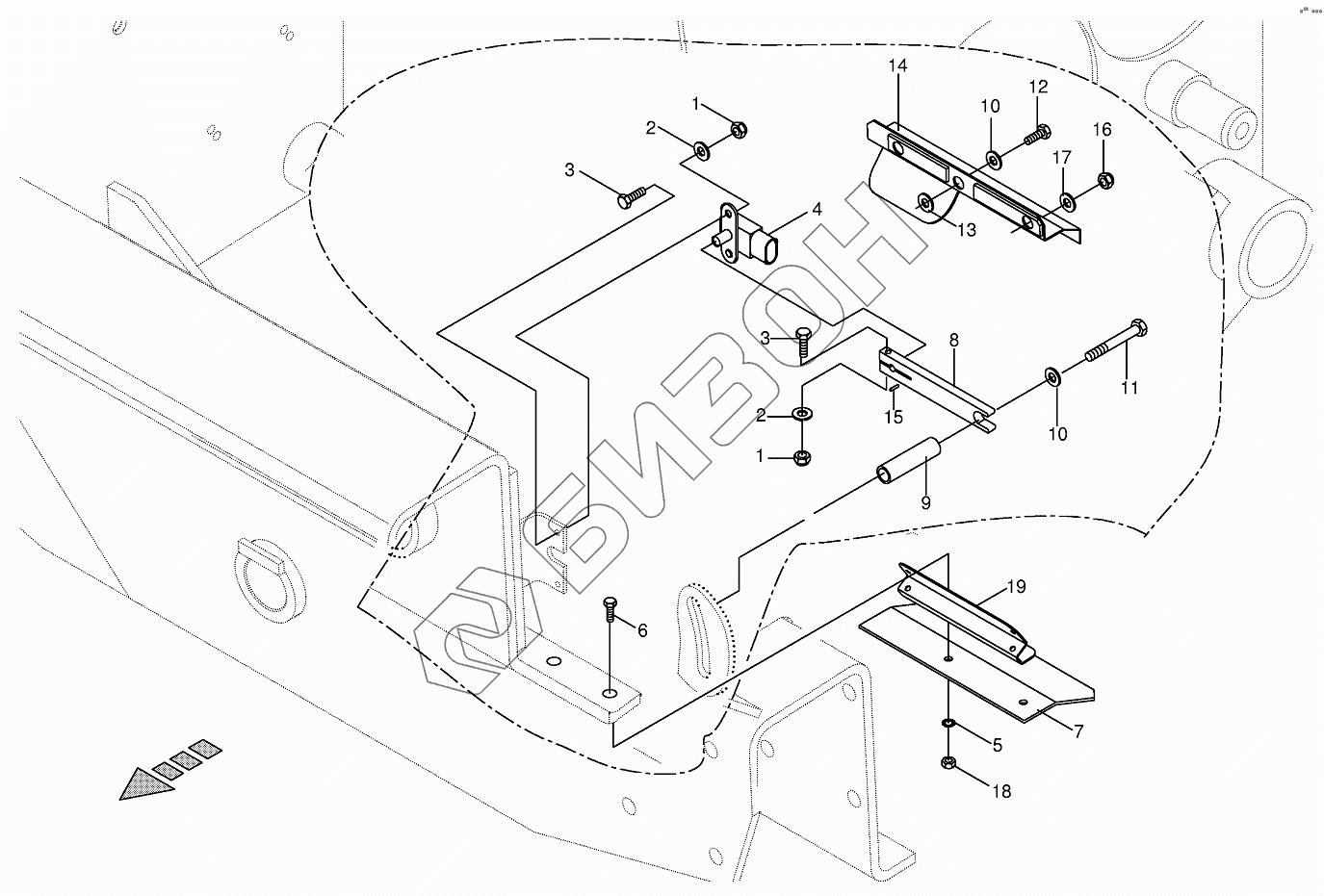Графический каталог запасных частей к технике: KRONE BIG-X-650. Angle sensor- Pivoting frame