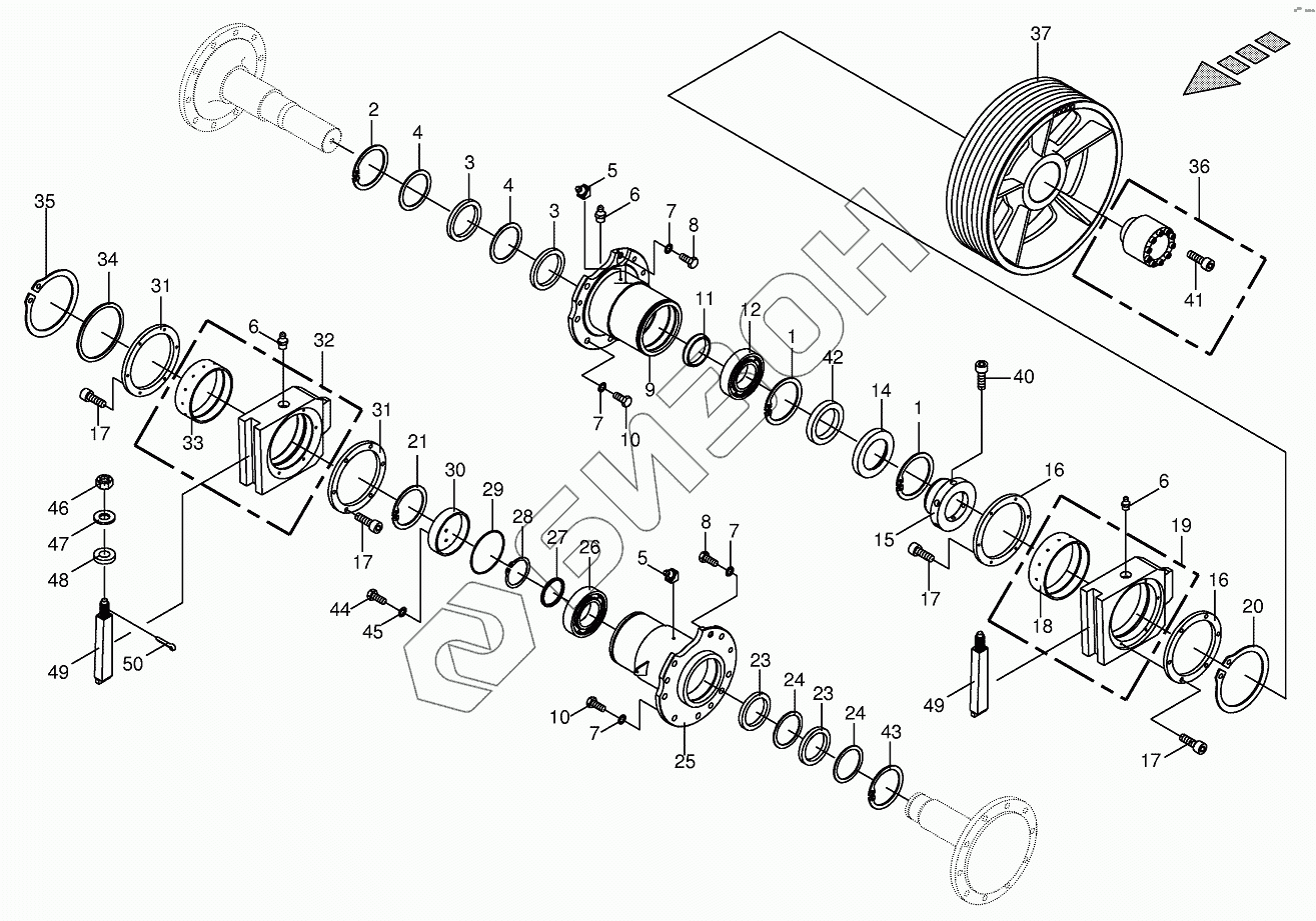 Графический каталог запасных частей к технике: KRONE BIG-X-650. Chopping drum bearing / counter bearing