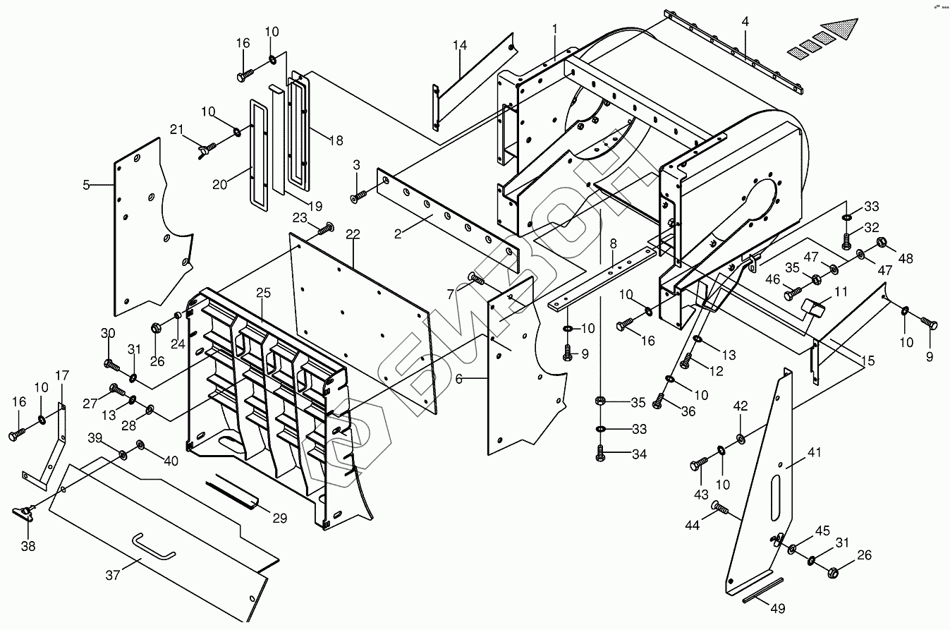 Графический каталог запасных частей к технике: KRONE BIG-X-650. Discharge accelerator housinge