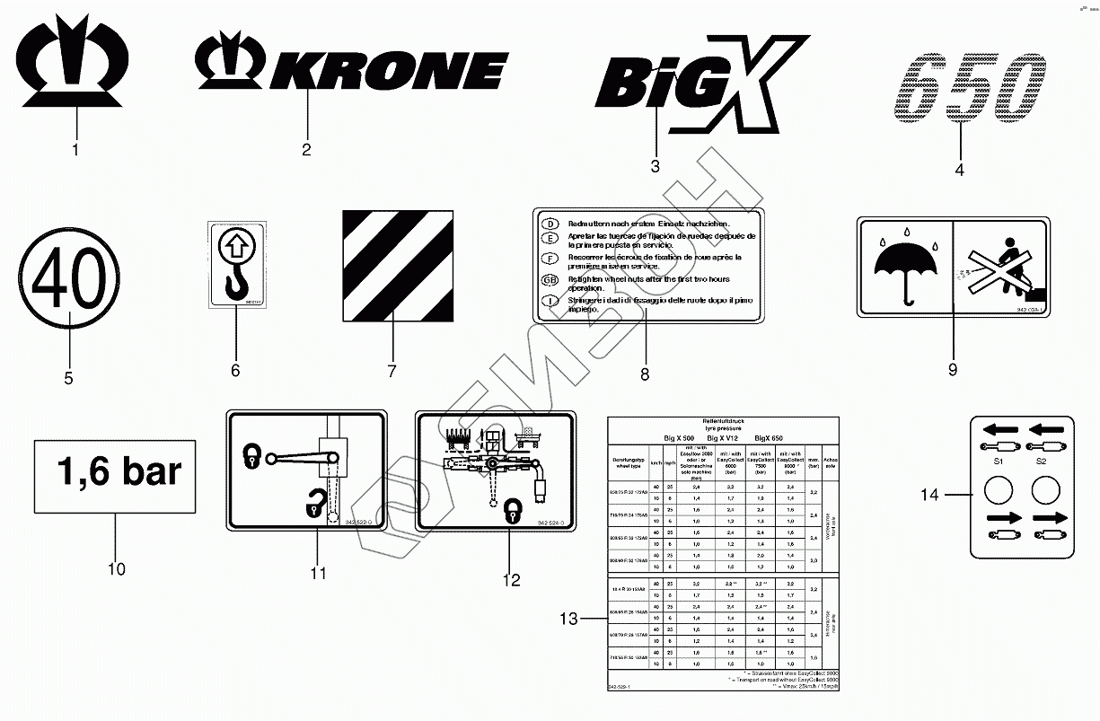 Графический каталог запасных частей к технике: KRONE BIG-X-650. General information labels