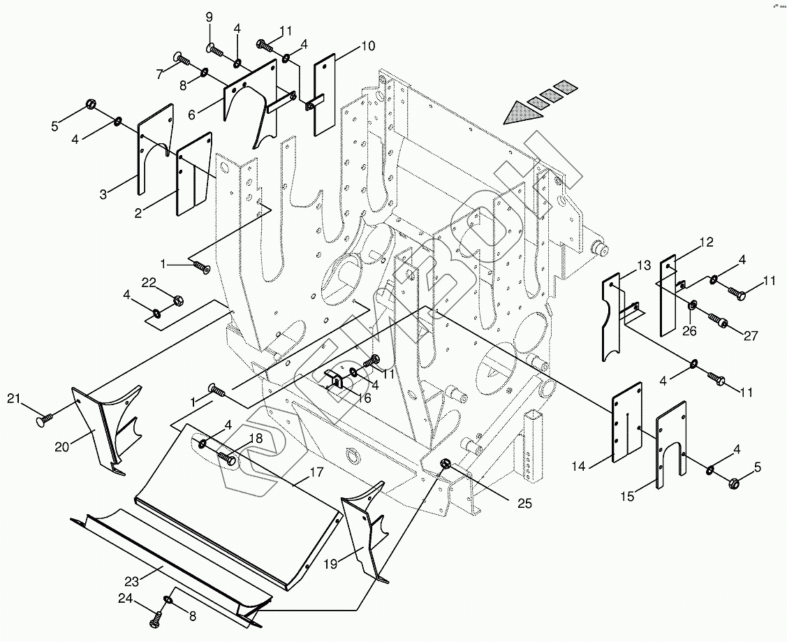 Графический каталог запасных частей к технике: KRONE BIG-X-650. Grain collecting plate / slotted cover