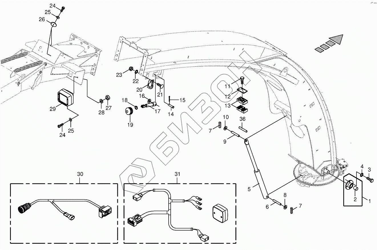 Графический каталог запасных частей к технике: KRONE BIG-X-650. Upper discharge chute - mounting parts