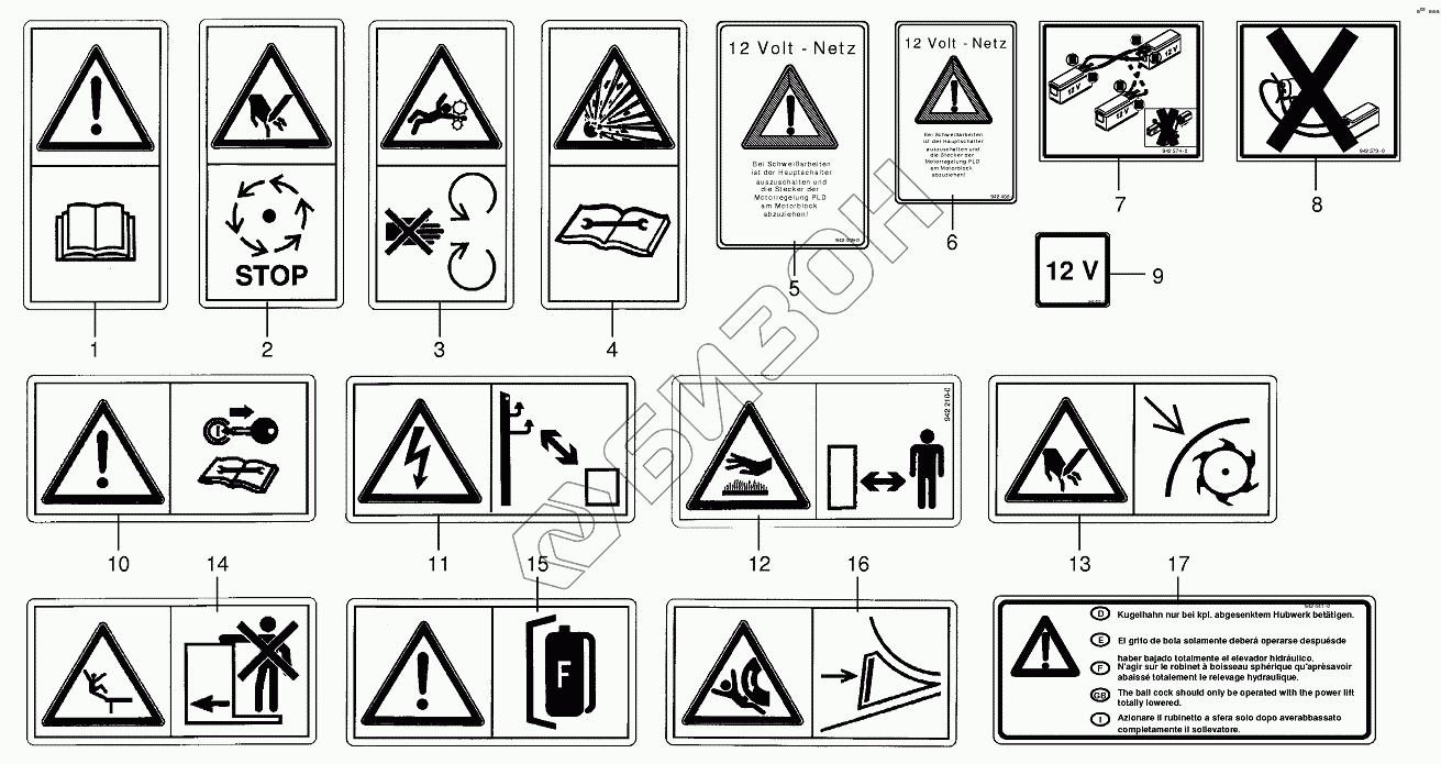 Графический каталог запасных частей к технике: KRONE BIG-X-650. Warning signs