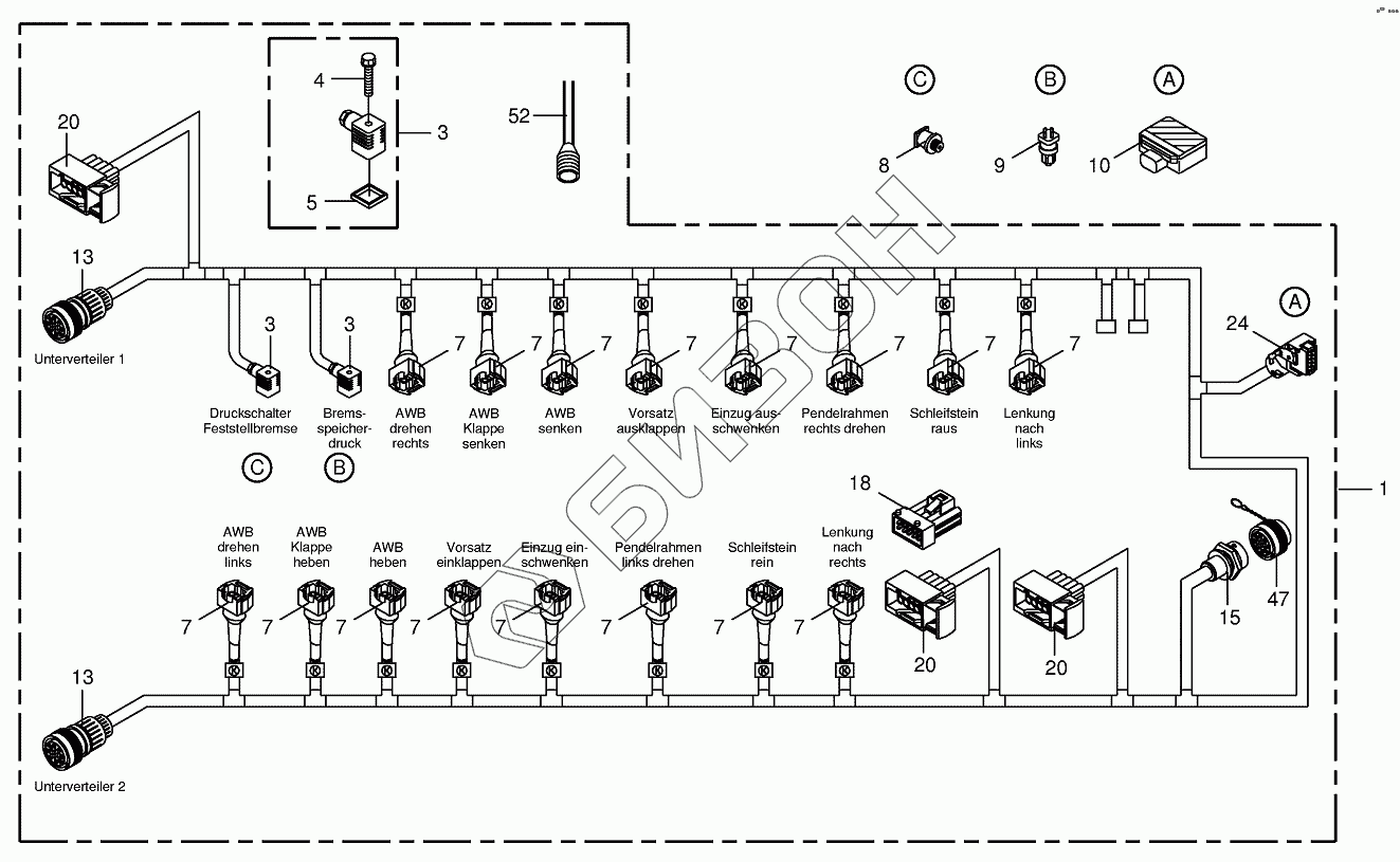 Графический каталог запасных частей к технике: KRONE BIG-X-650. Wiring Harness - valve lock
