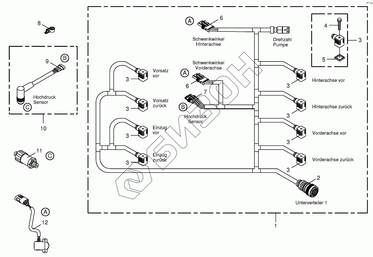 Графический каталог запасных частей к технике: KRONE BIG-X-650. Wiring loom - hydraulic pumps