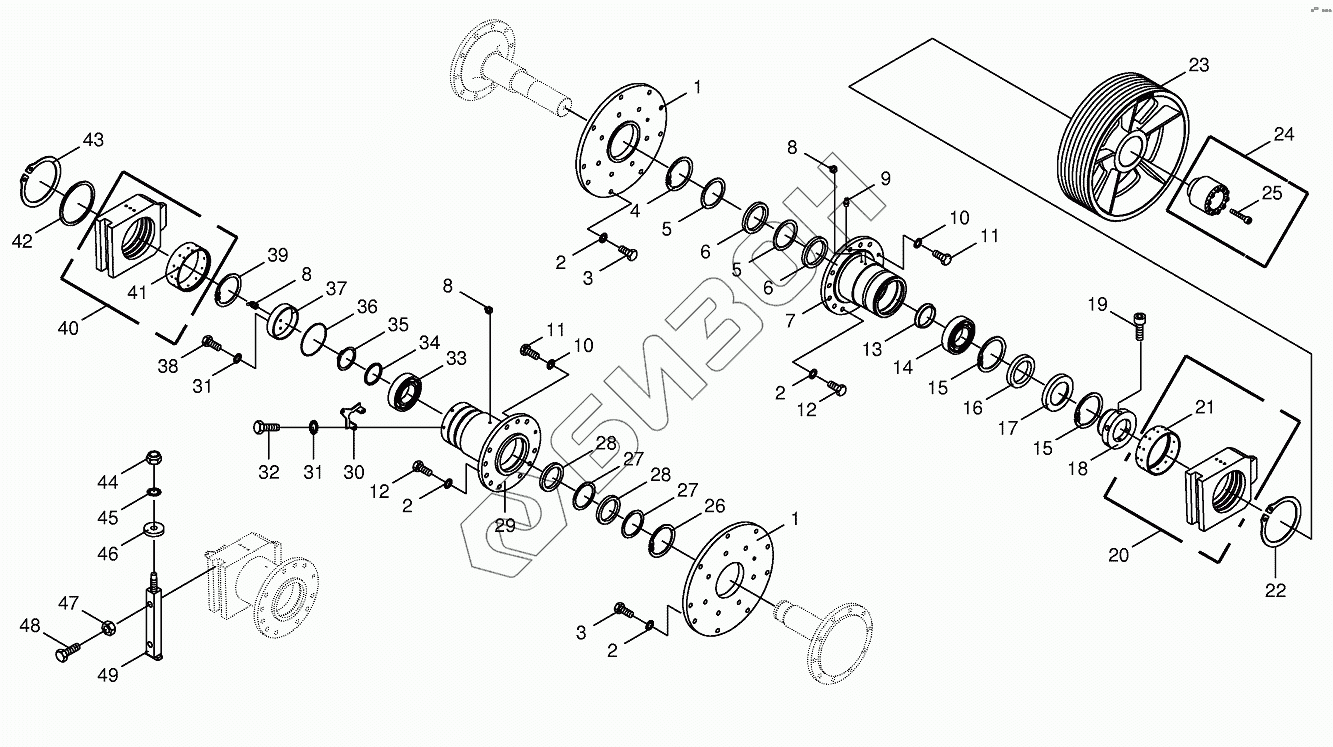 Графический каталог запасных частей к технике: KRONE BIG-X-650. Chopping drum bearing/counter bearing