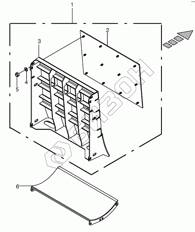Графический каталог запасных частей к технике: KRONE BIG-X-650. Discharge accelerator rear panel