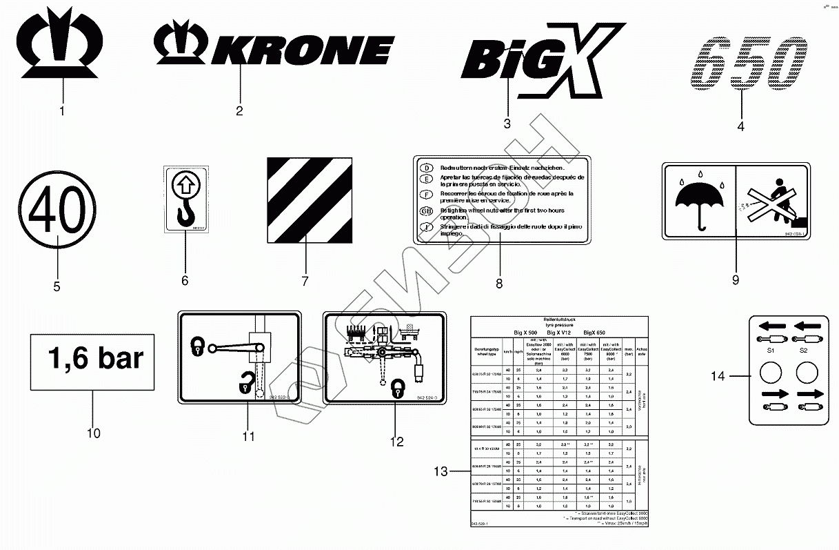 Графический каталог запасных частей к технике: KRONE BIG-X-650. General information labels