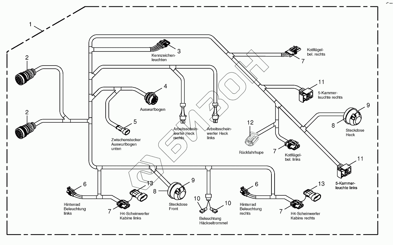 Графический каталог запасных частей к технике: KRONE BIG-X-650. Wiring Harness-lighting