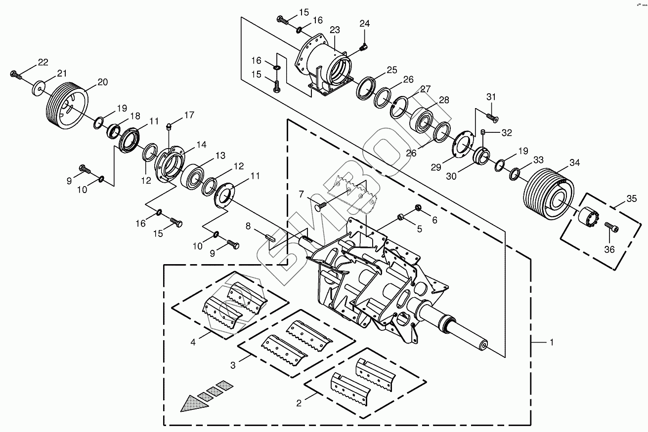 Графический каталог запасных частей к технике: KRONE BIG-X-650. Discharge accelerator/bearing