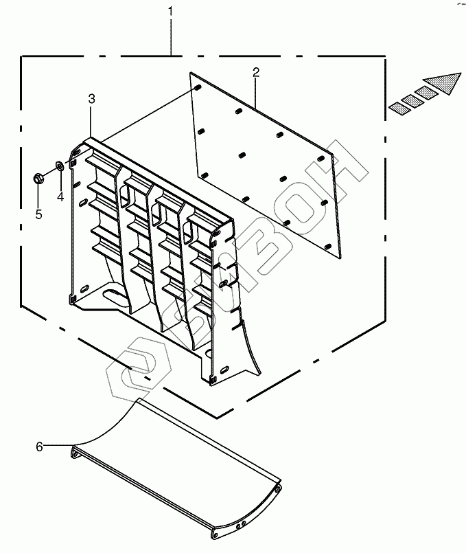 Графический каталог запасных частей к технике: KRONE BIG-X-650. Discharge accelerator rear panel