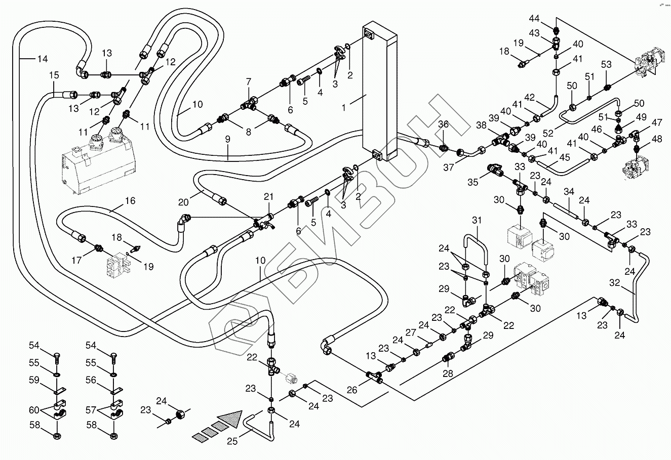 Графический каталог запасных частей к технике: KRONE BIG-X-650. Housing line I oil cooler
