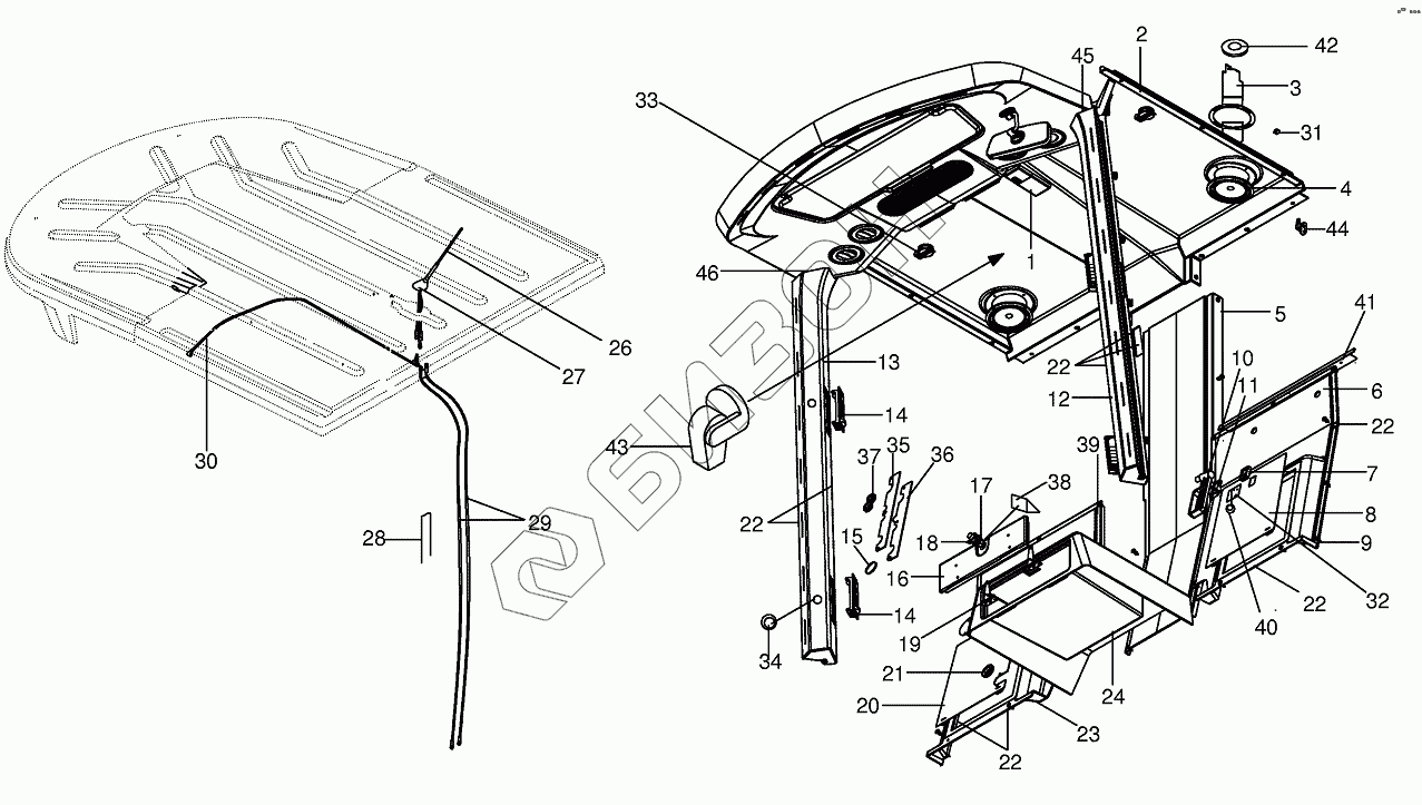 Графический каталог запасных частей к технике: KRONE BIG-X-650. Сab-Сab lining, aerial