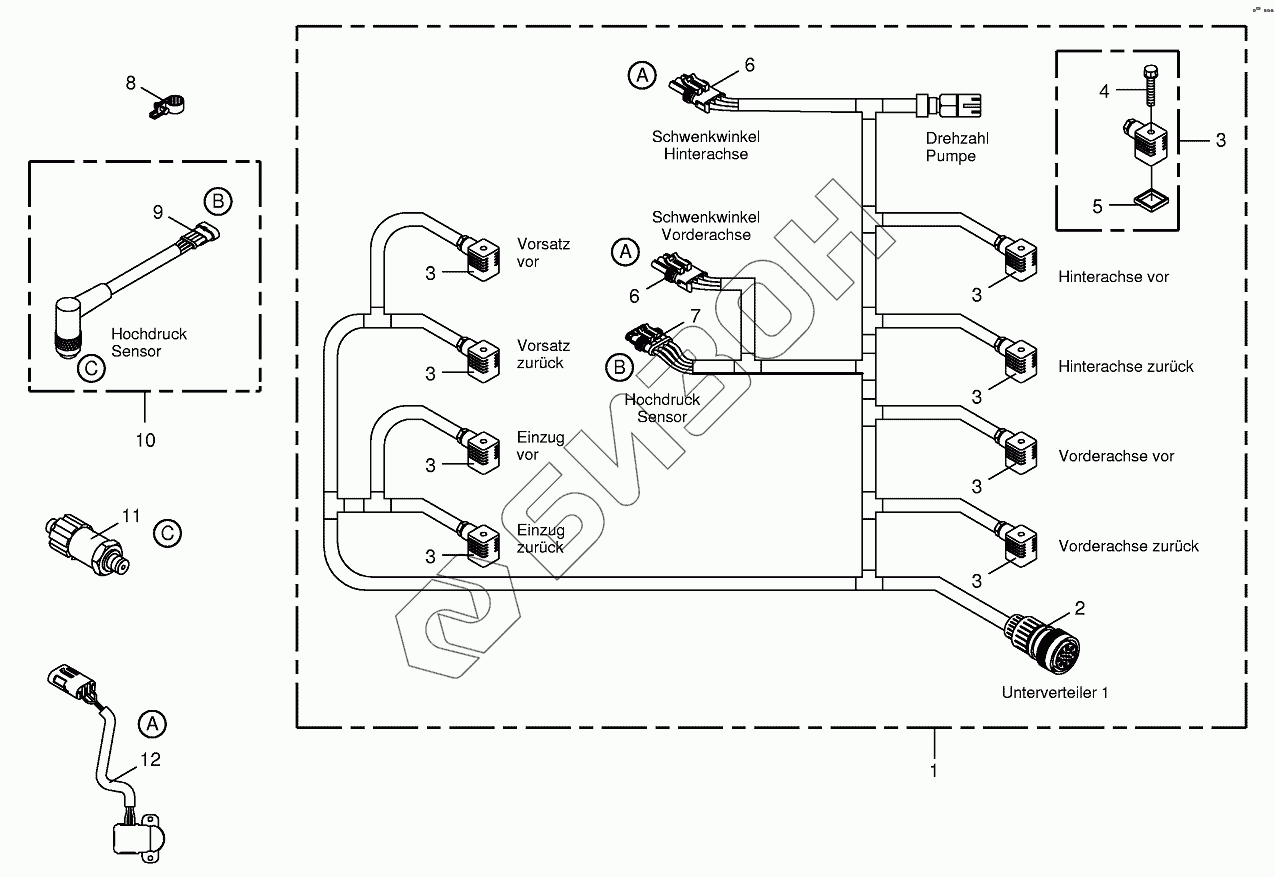 Графический каталог запасных частей к технике: KRONE BIG-X-650. Wiring loom-hydraulic pumps