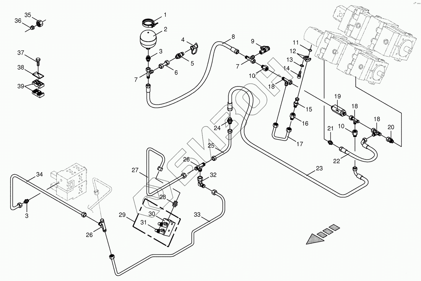 Графический каталог запасных частей к технике: KRONE BIG-X-650. Charge pressure lines- back