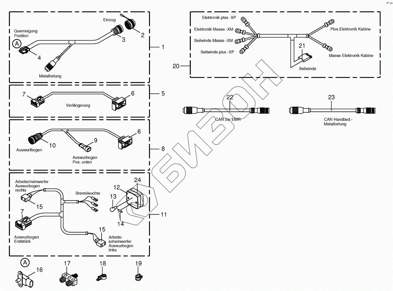 | 20 | 200800381 | Wiring harness-rope winch / electronics cab |