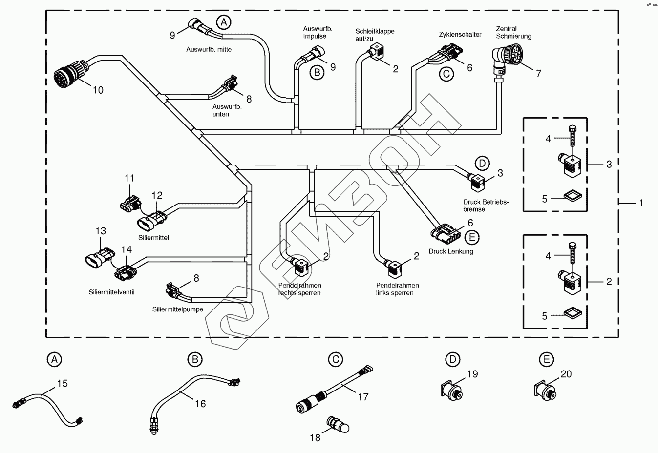 Графический каталог запасных частей к технике: KRONE BIG-X-650. Wiring harness- below the cabin