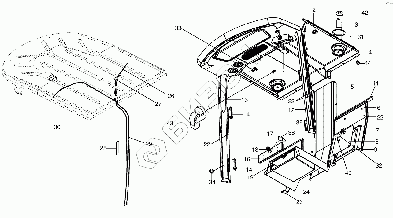 Графический каталог запасных частей к технике: KRONE BIG-X-650. Cab - Cab lining, aerial