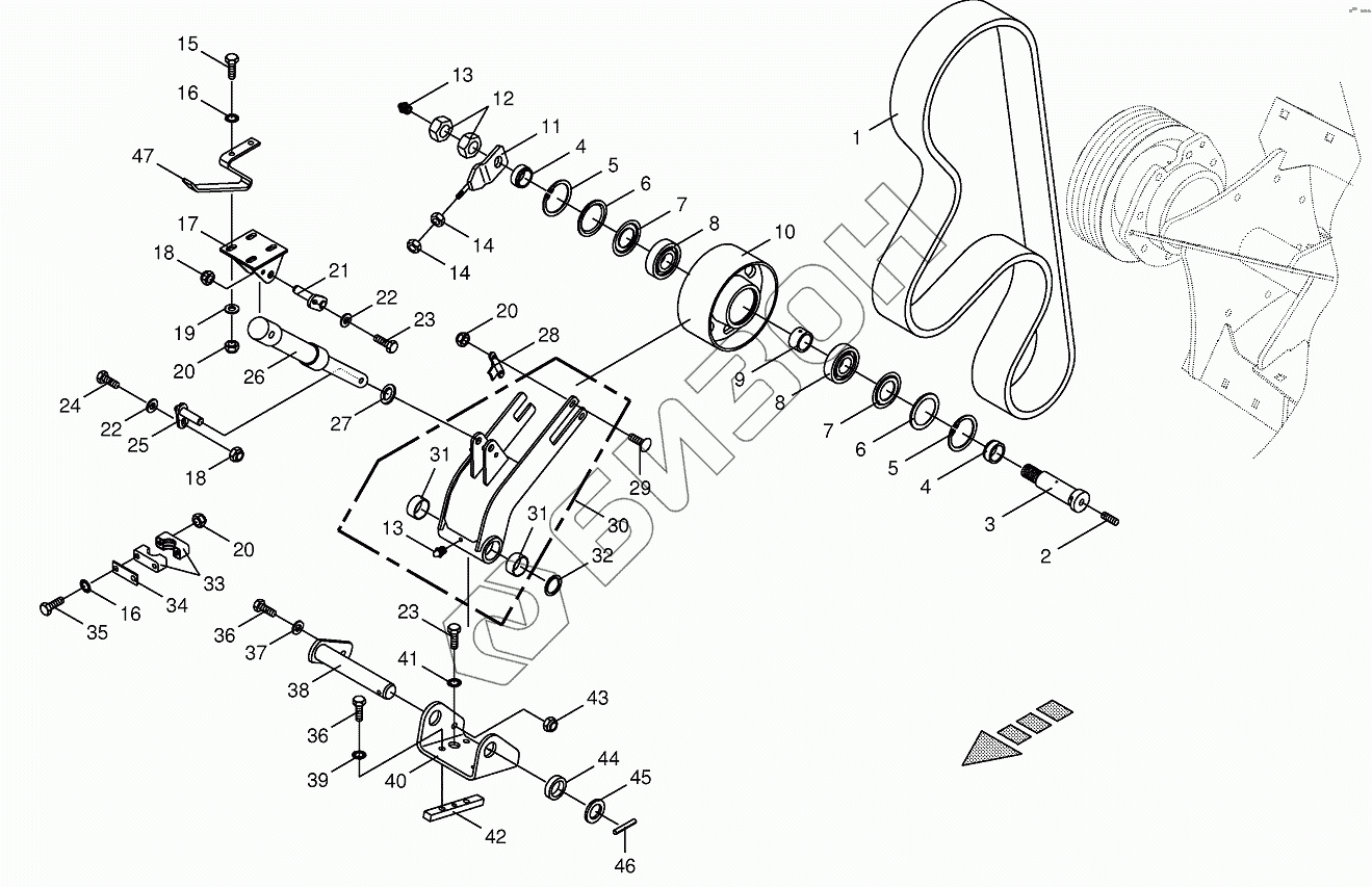 Графический каталог запасных частей к технике: KRONE BIG-X-650. Cracker drive / tensioning device
