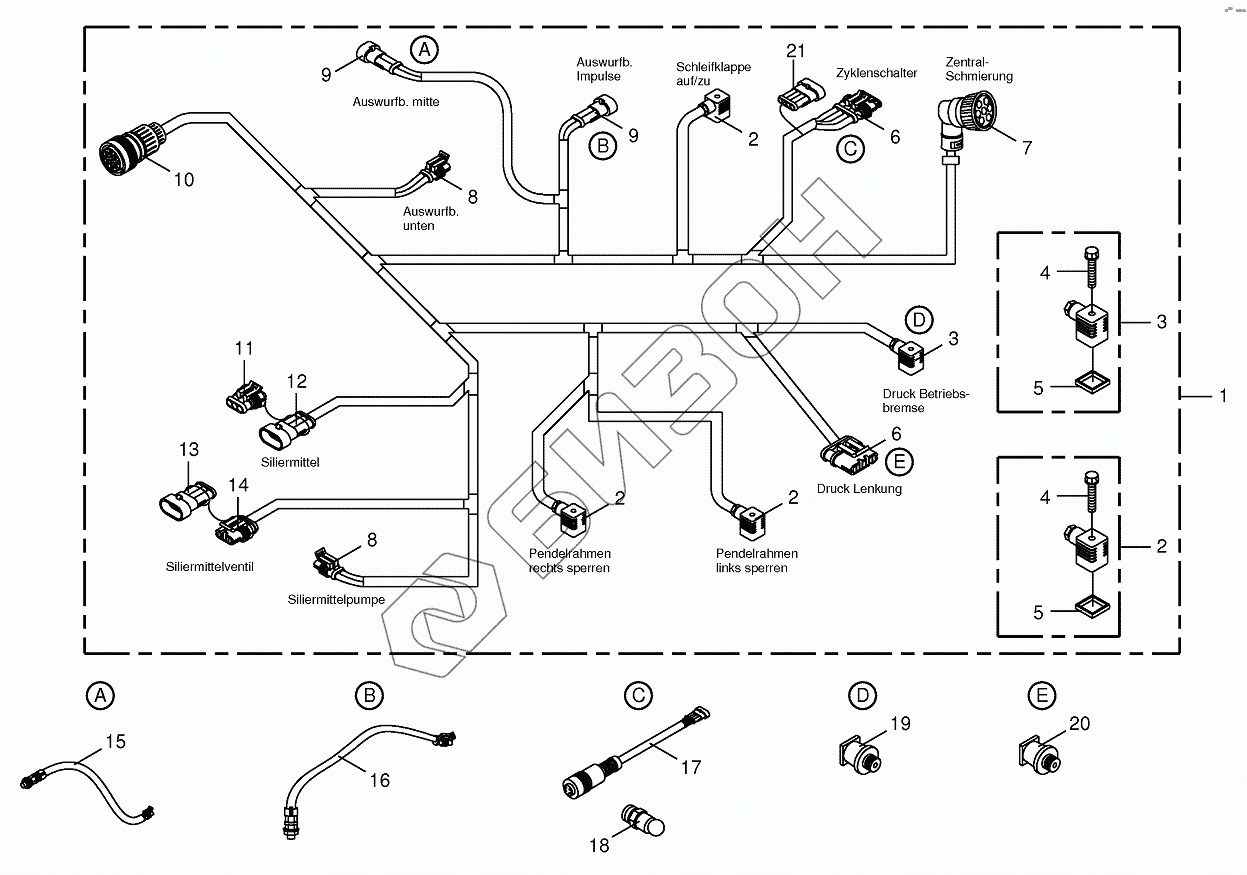 Графический каталог запасных частей к технике: KRONE BIG-X-650. Wiring harness - below the cabin