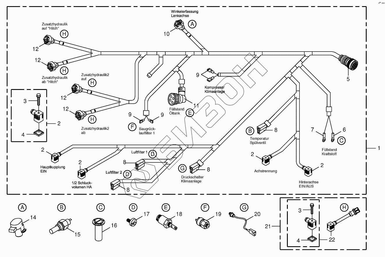 Графический каталог запасных частей к технике: KRONE BIG-X-650. Wiring Harness - rear / drive valve