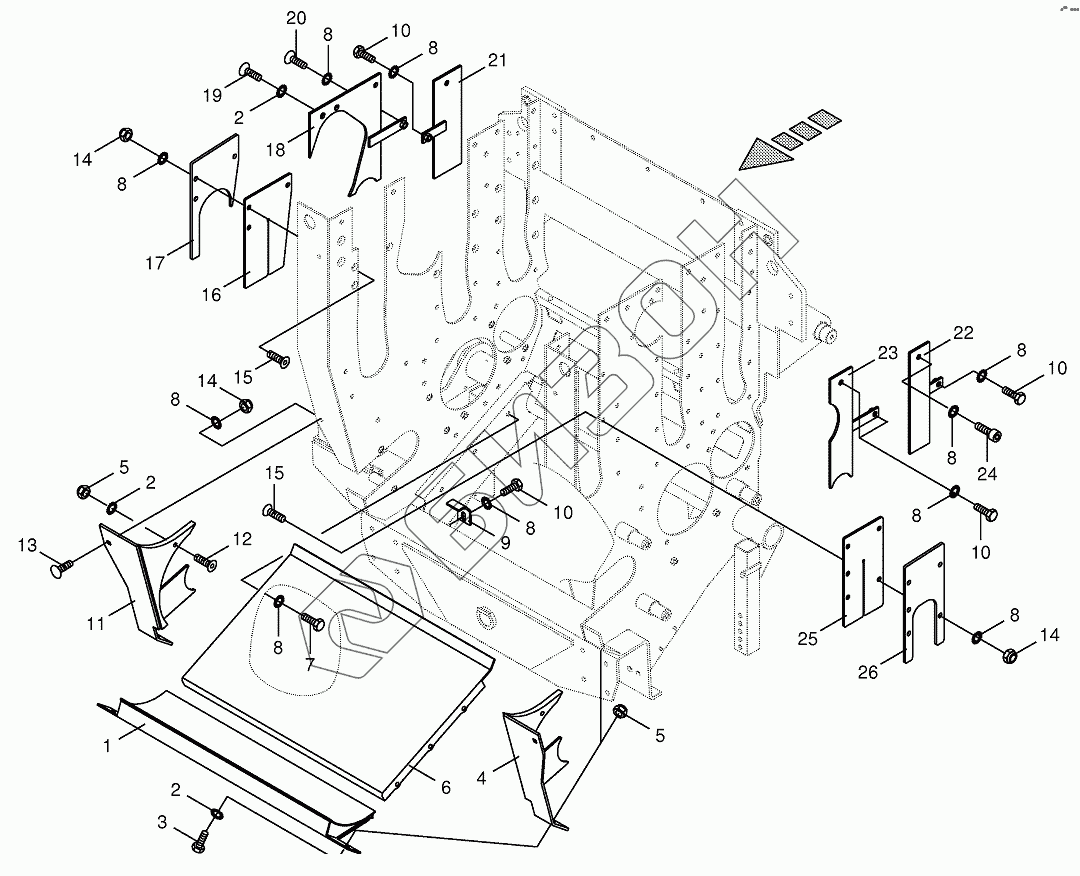 Графический каталог запасных частей к технике: KRONE BIG-X-650. Grain collecting plate/slotted cover