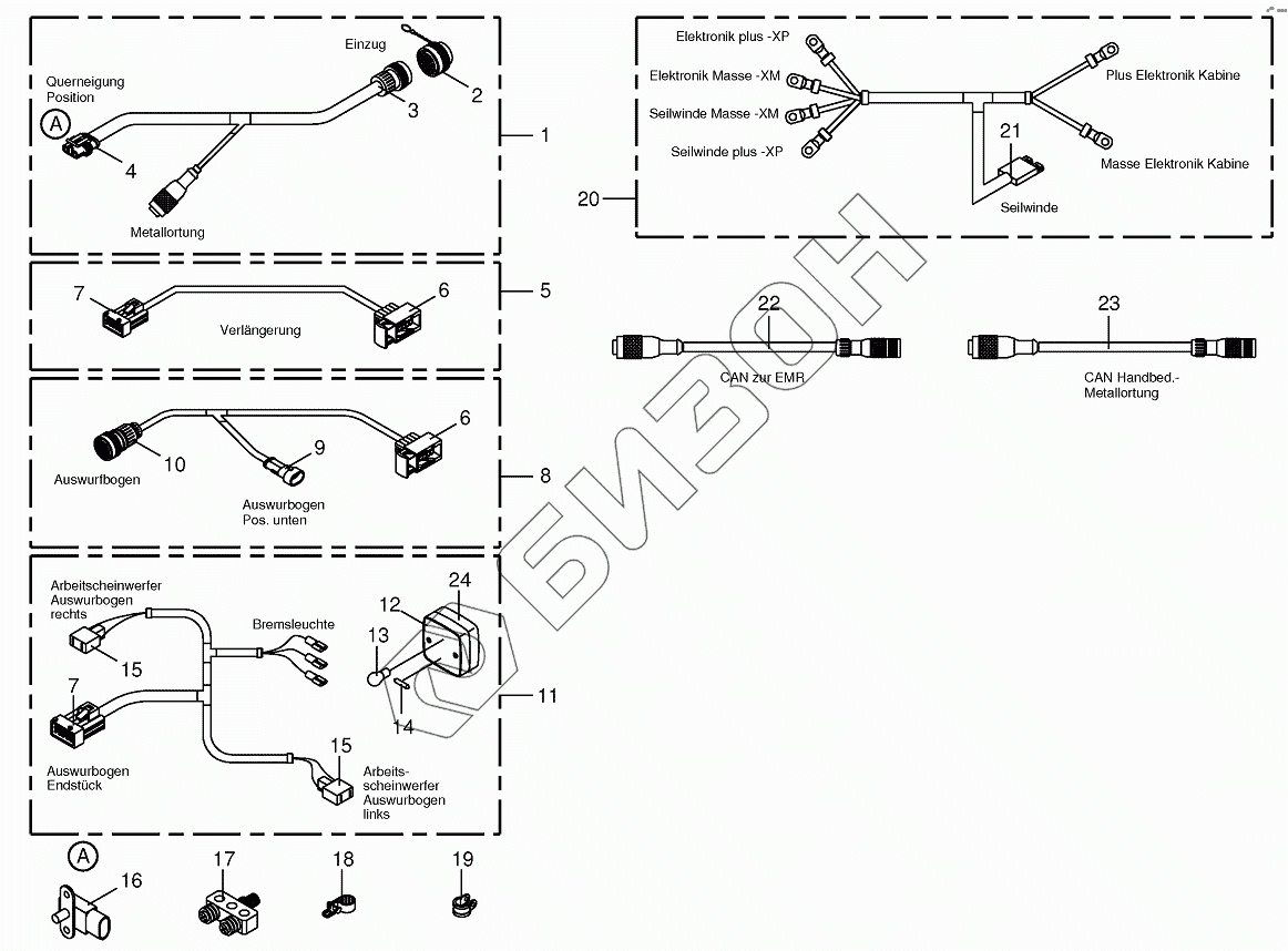 | 20 | 200800381 | Wiring harness-rope winch / electronics cab |