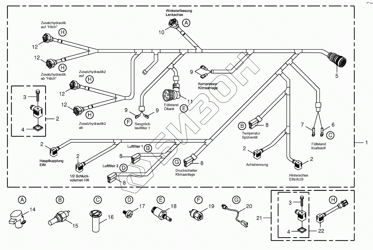 Графический каталог запасных частей к технике: KRONE BIG-X-650. Wiring Harness-rear/drive valve